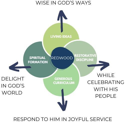 At Redwood Classical Academy, our hope for every child is that they would grow to be wise in God’s ways, delight in His created world, respond with joyful service, and celebrate life together with His people. To reach this vision, we must educate the whole child: mind, heart, and soul. When we apply living ideas in the classroom, we awaken not only a love for learning, but a love for people and their God-given stories. We teach generosity so that service to others flows with joy. Every hymn sung, scripture recited, and prayer offered points students toward walking faithfully in God’s ways. And because life together involves people, we teach children to pursue peace and restore conflict with meaning and grace. As these faithful roots grow deep, we long to see a second generation rise to be anchored in truth, radiant with purpose, and ready to carry the light of Christ into the world. RCA exists not only to educate minds, but to shape hearts while cultivating a legacy of faith, wonder, and purpose that echoes through generations.